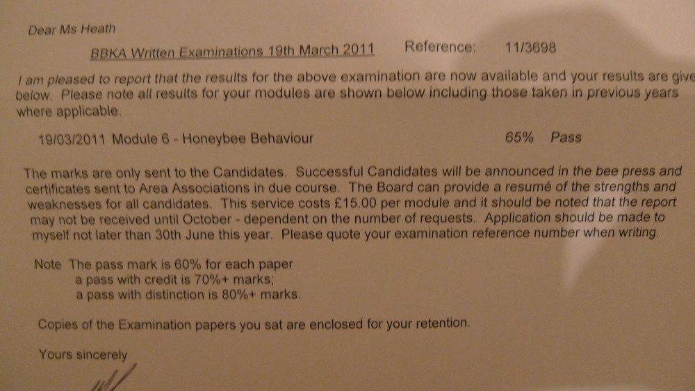 Should say a special thank you to the Mid Bucks Beekeepers Association. The study notes they’ve put together for each BBKA module are completely free and amazing. Without them to have a quick look at while sitting on the bus I doubt I’d have passed. They’ve also produced notes for the Basic Assessment. All their study notes can be found under the Categories section on the right hand side of their website. It is amazing how generous beekeepers like them are with their knowledge.