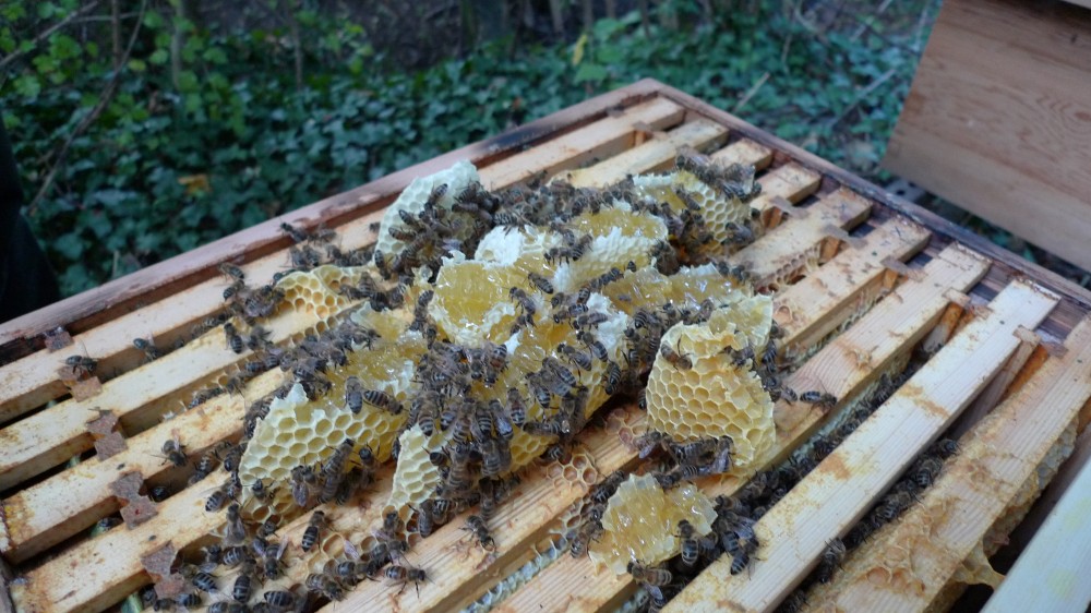 well my Italians have two full supers each of honey and i am feeding them now so they still go into winter full up. they did quite well after last years terrible winter.. so fingers crossed, i love that they make comb in any spare space.. so sweet! great photos! c
