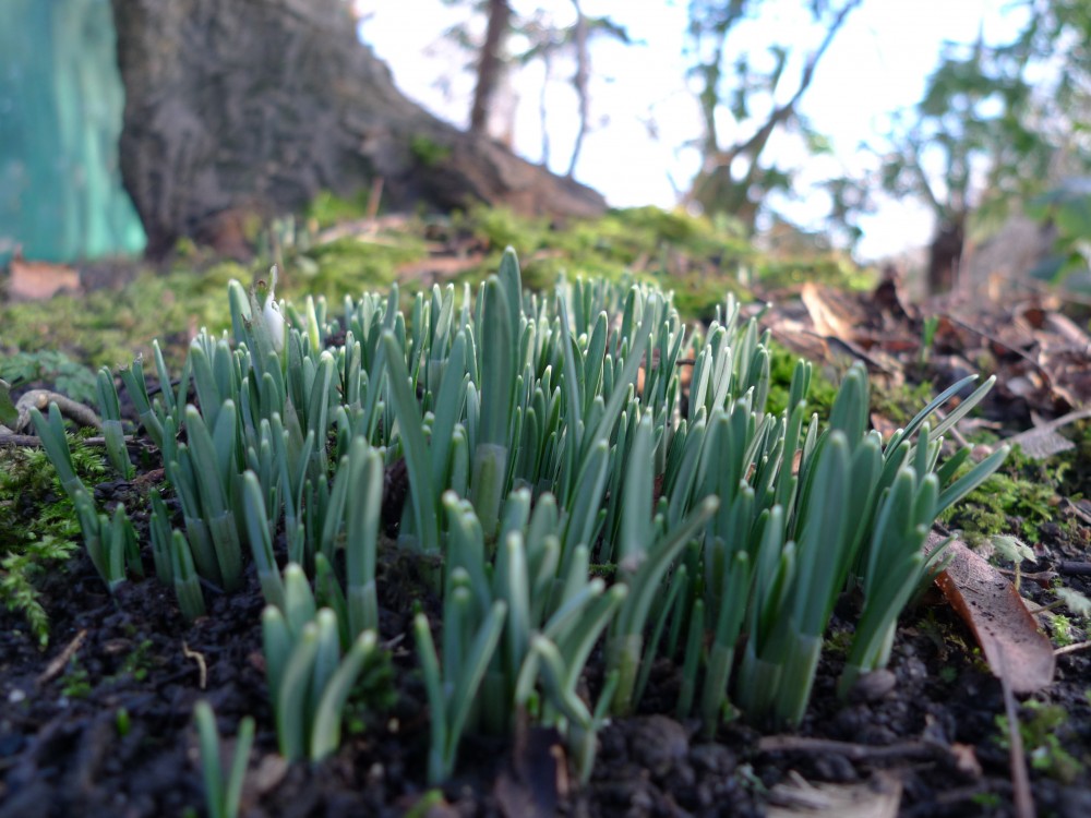 Snowdrop shoots peeking out from the ground. I also saw crocus leaves. Spring is coming!