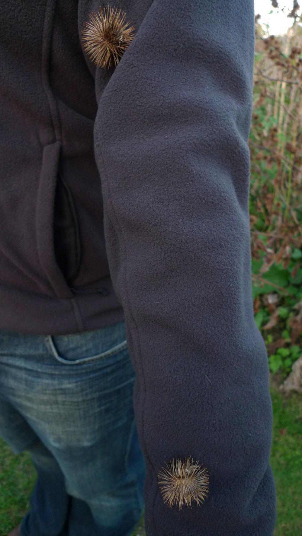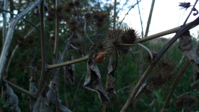 These thistle balls have sharp arms which stick wonderfully to fluffy jumpers and hair. Drew and me had a great time throwing them at each other.