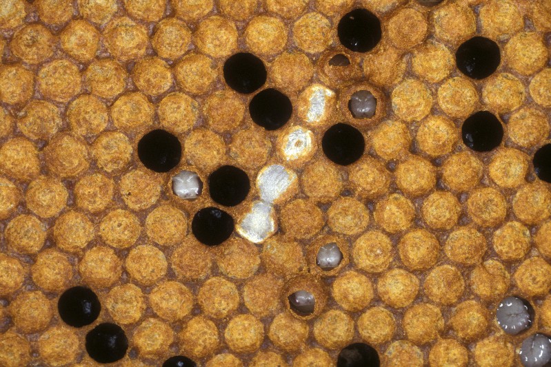 Bald brood with wax moth larvae activity. Courtesy The Food and Environment Research Agency (Fera), Crown Copyright.