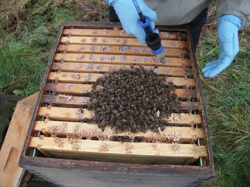 Treating with oxalic acid. Courtesy The Food and Environment Research Agency (Fera), Crown Copyright.