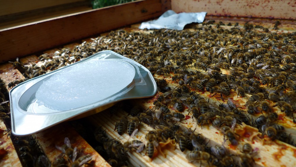 “What is Apiguard and how does it work?” – you may or may not be thinking. For anyone who doesn’t know, it’s a natural thymol (derived from thyme) based treatment that kills varroa mites. The bees remove the gel from the tray to clean the hive and remove the strong thymol smell. The Apiguard gel sticks to their body hairs and becomes distributed around the hive, killing an average of 93% of the mites under normal conditions.