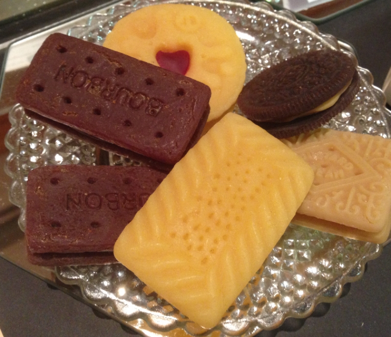 Can you believe these aren’t edible? Judy should be working at Madame Tussaud’s! Several British classic biscuits replicated in all their glory here – the Jammie Dodger, the Custard Cream, Scottish Shortbread and the chocolate Bourbon. I have forgotten the name of the round chocolate sandwich biscuit.