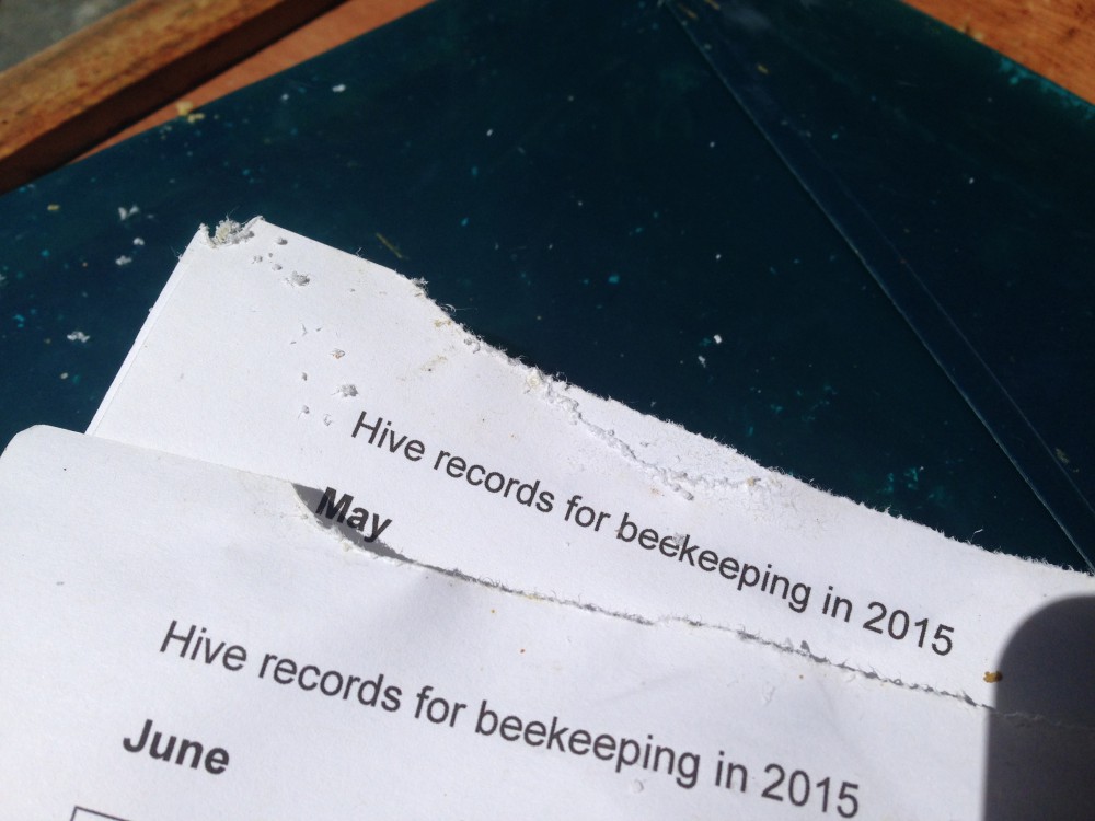 Queen Melissa must have given her loyal subjects orders to destroy all records, as their hive records had a distinctly chewed appearance. Perhaps she is hoping to remove all evidence of her age before her daughters decide she is getting too old. Still no sign of queen cells and the bees are well on their way to filling up a second super. They really are the most perfect bees.