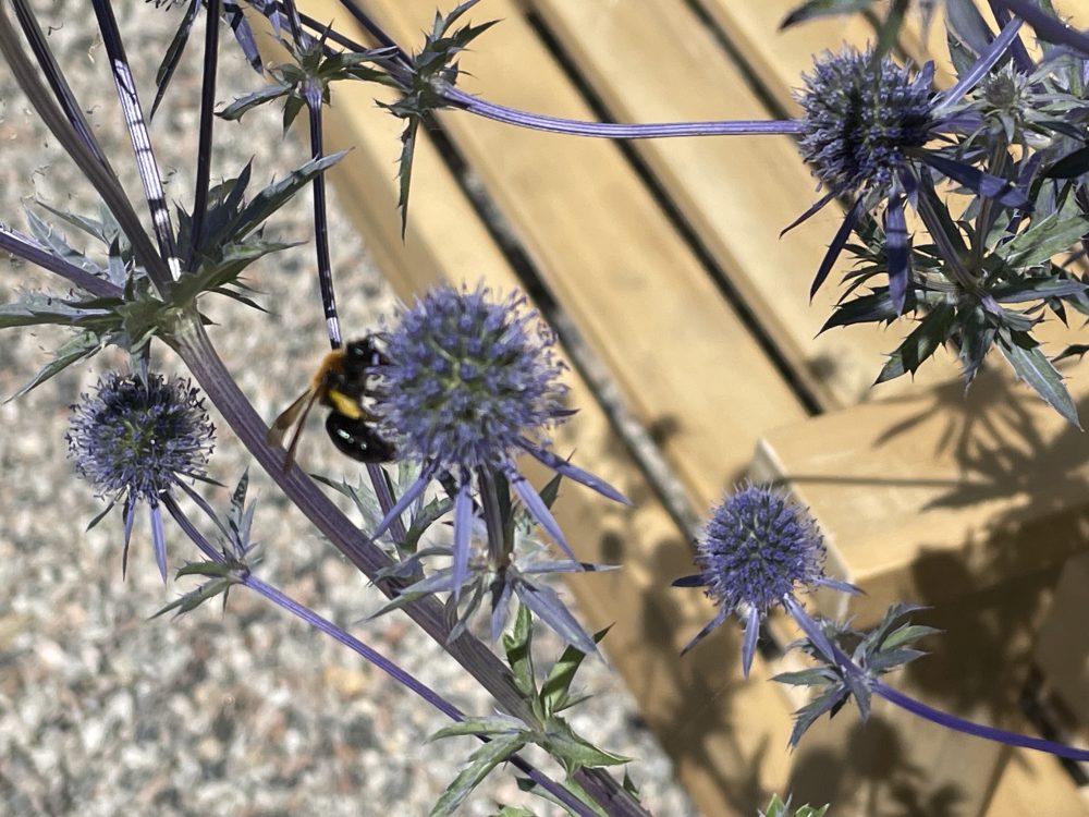 Andrena thoracica (Cliff mining bee) on Eryngium planum