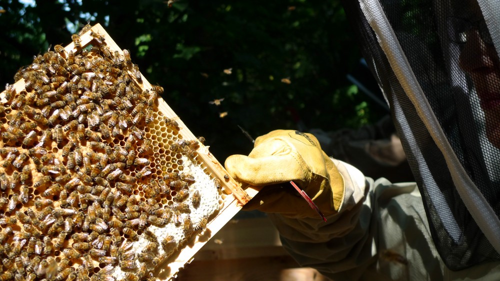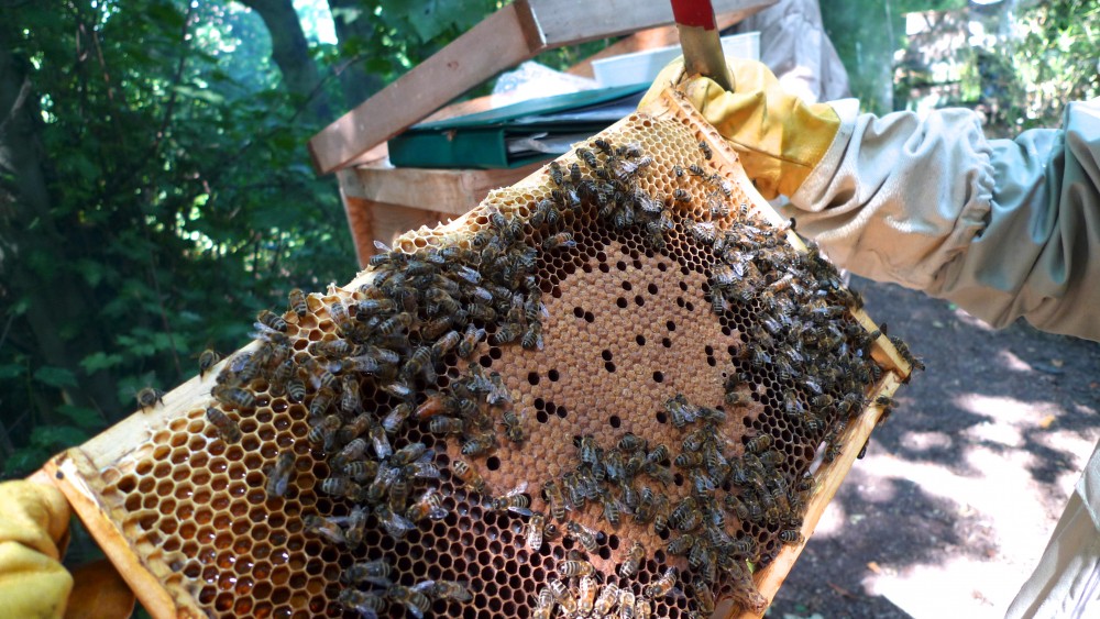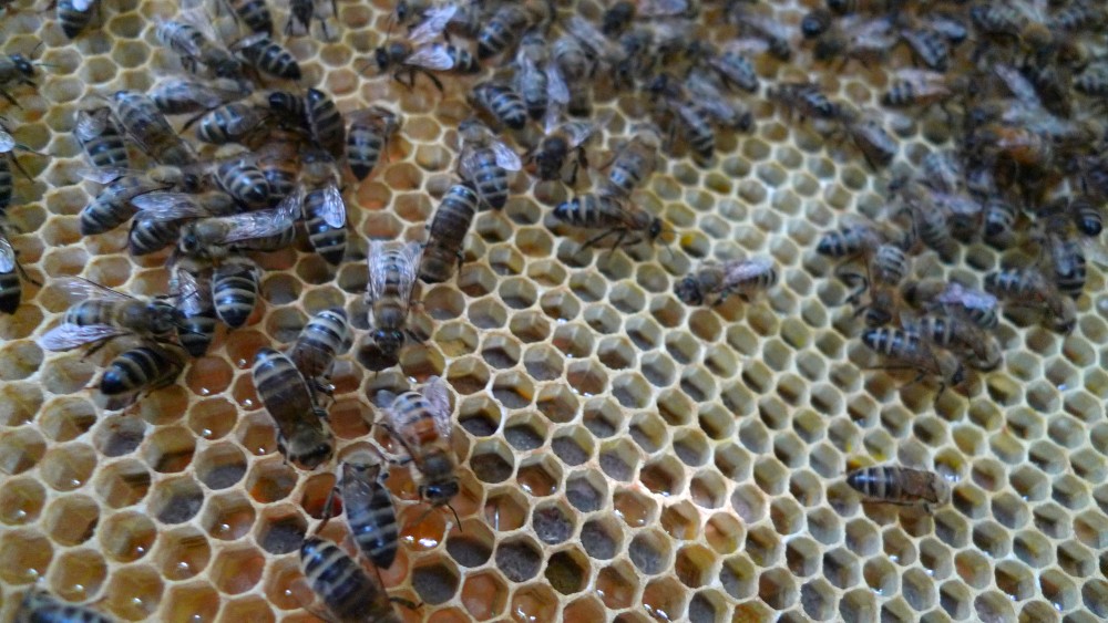 I was encouraged that he mostly keeps his bees on a brood-and-a-half or double-brood system, as we are overwintering some of our hives on double brood boxes this year. For ease of lifting, some of his colonies are even kept completely in supers! I have not seen anyone do this before.
