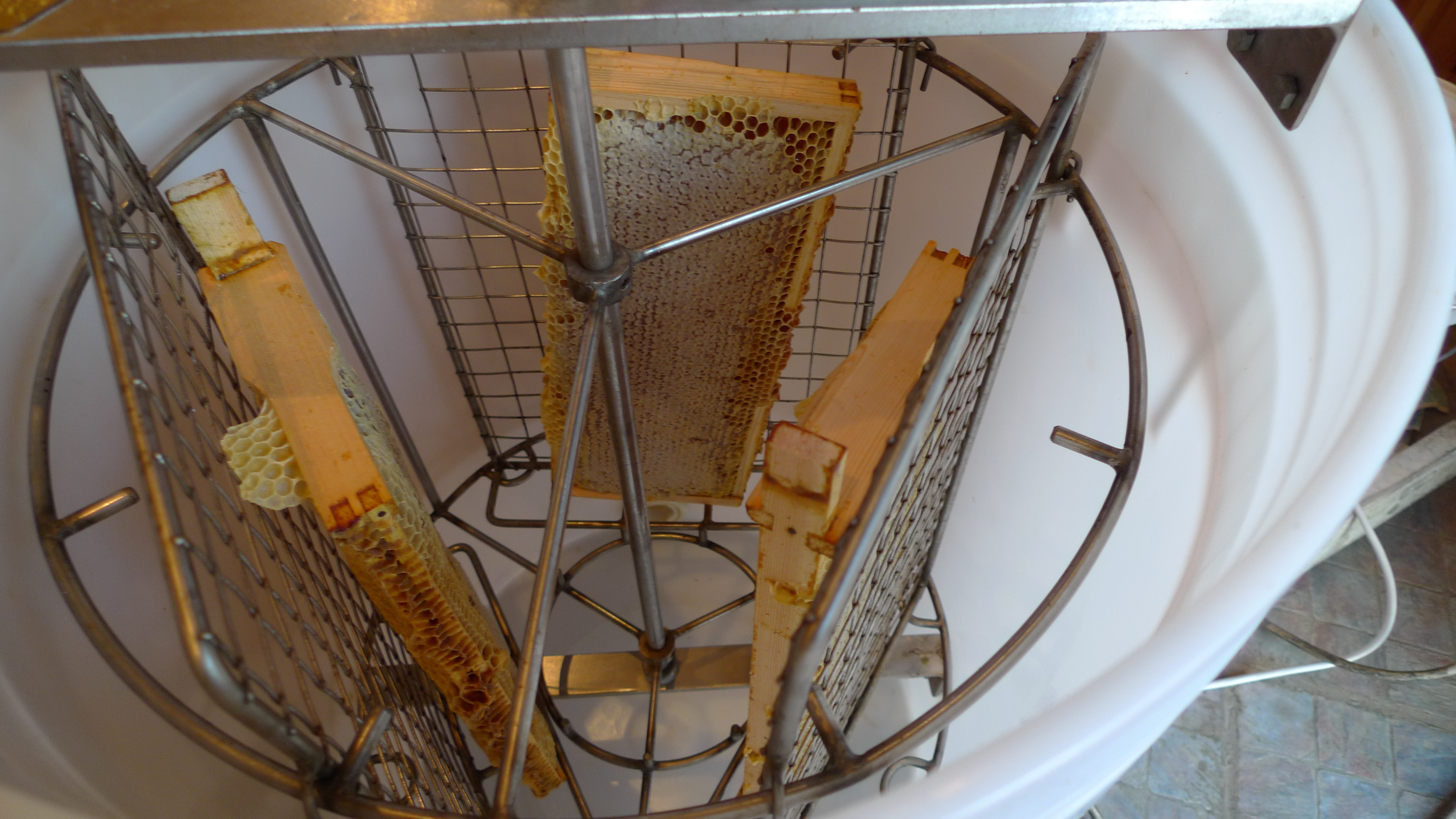 Emma and I opened up our hives on Saturday to check they’re doing ok for stores. Rosemary’s hive, shown below, is almost taking up the whole brood box. They couldn’t really be doing much better. They still have a fair amount of brood, on about 6 frames I think, all worker brood now – it’s too late for drones. Time to kick out their hungry brothers.